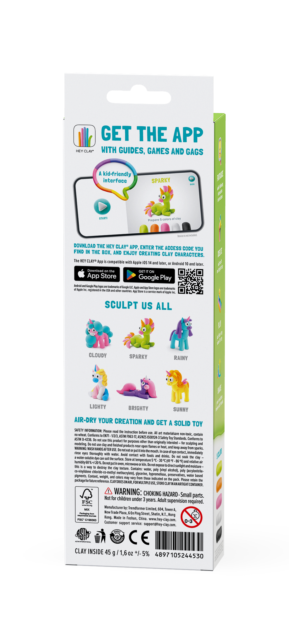 Atklāj radošumu ar HEY CLAY modelēšanas masu Vienradzis Spīdums! Veido jautras un krāsainas tēlu figūras un iedzīvini tās ar interaktīvas lietotnes palīdzību.