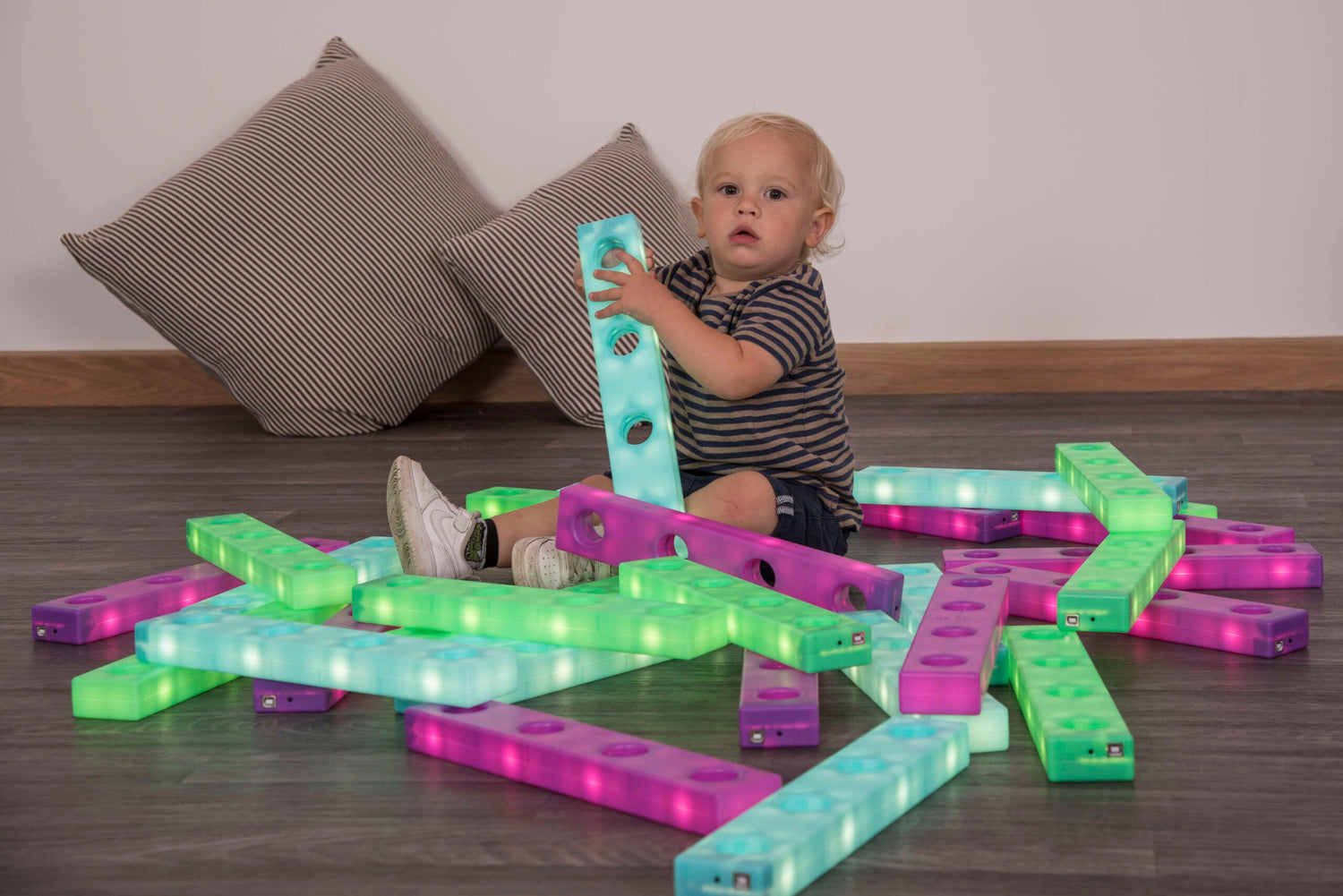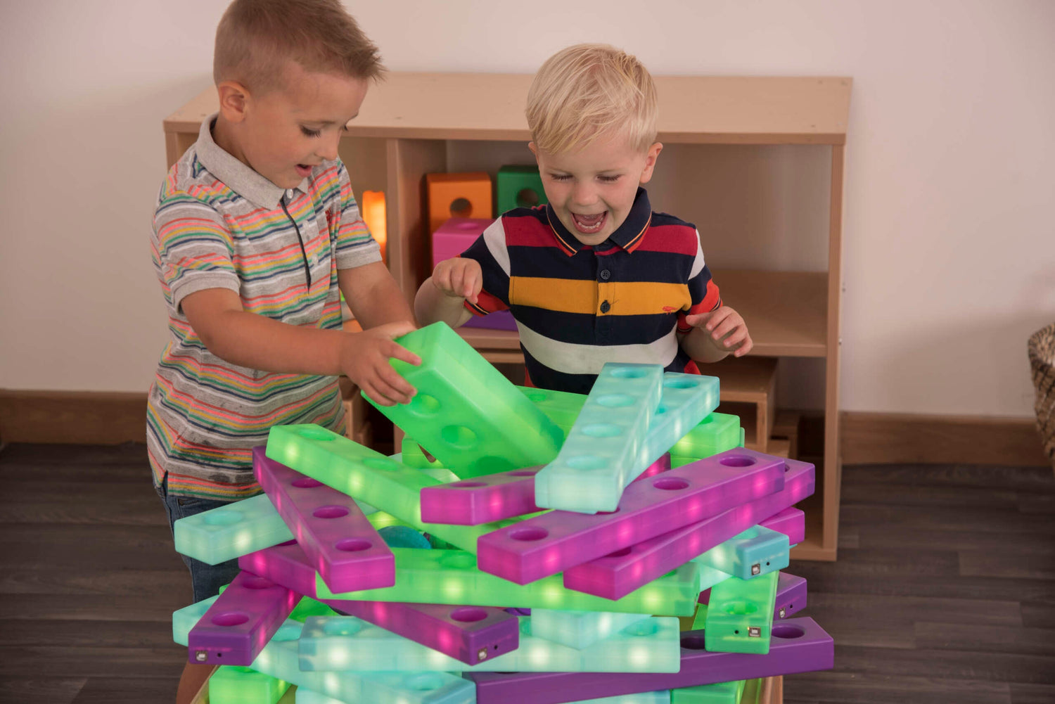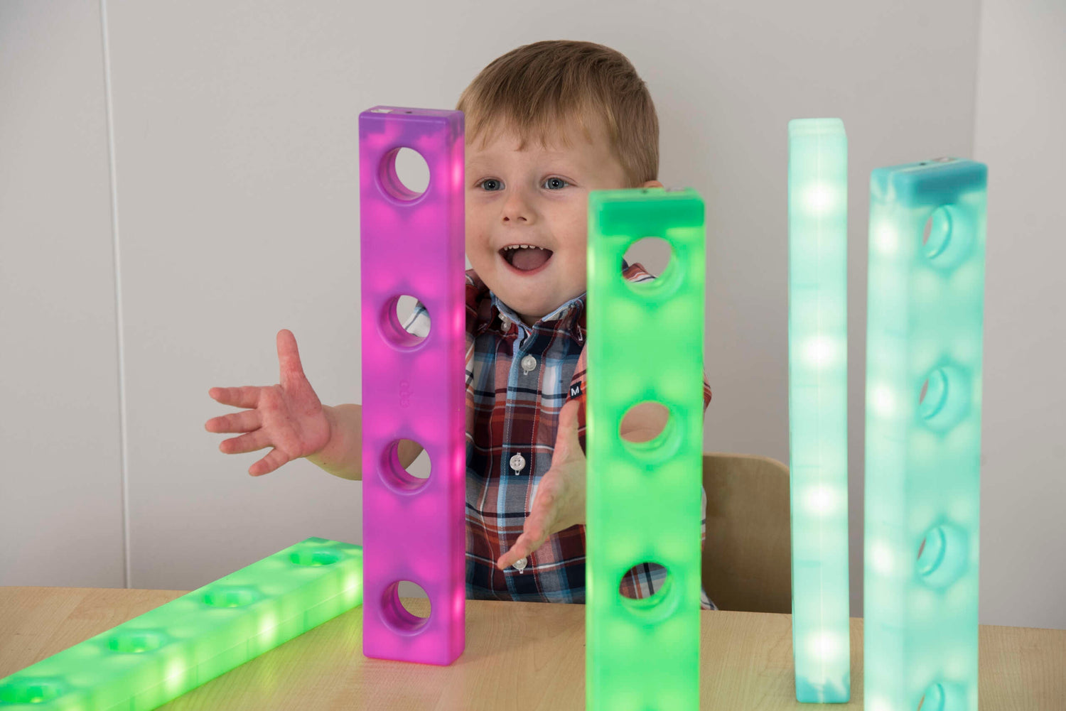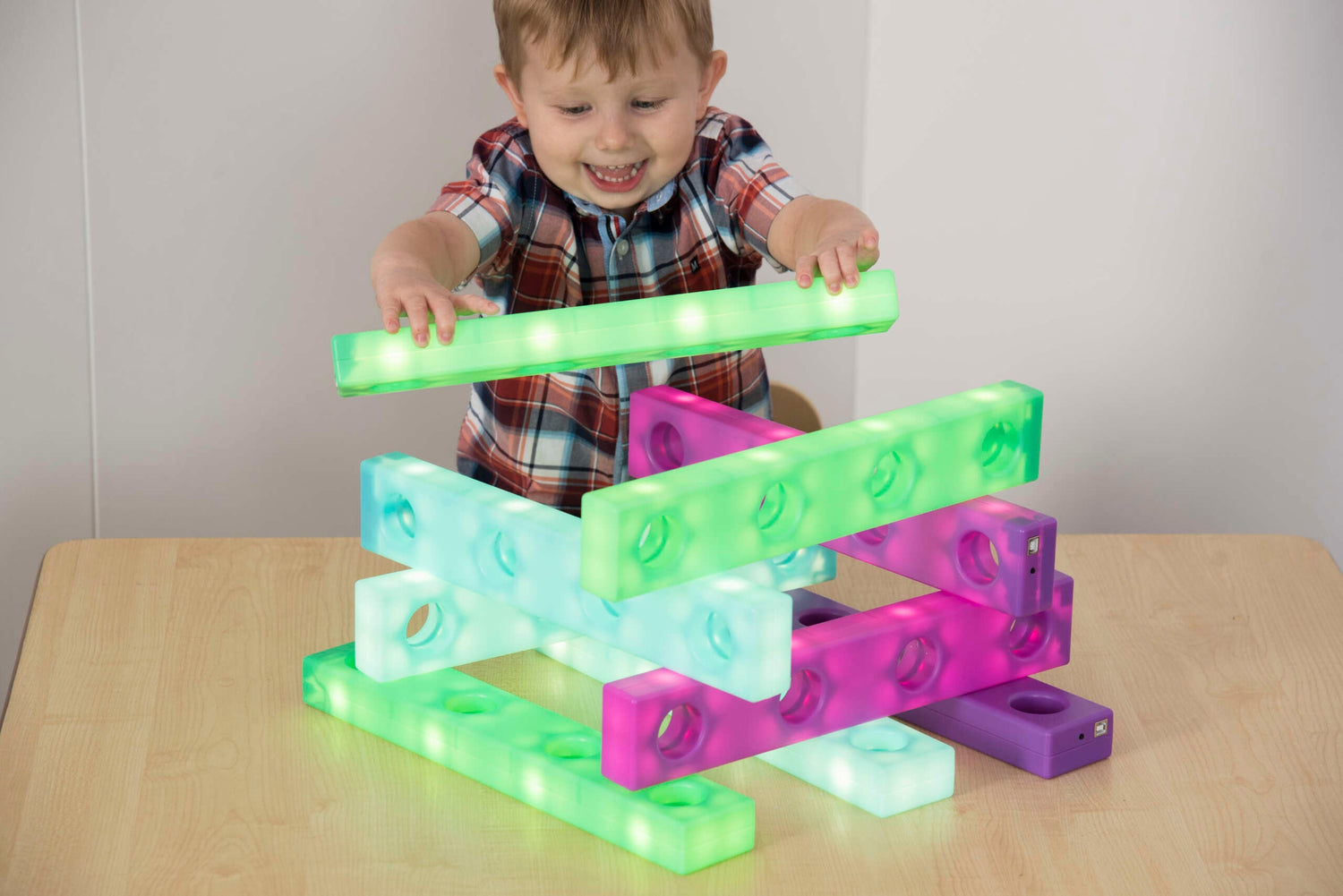 Vajuta-ja-sütti laetavad plokid muudavad ehitamise selgeks põhjus-tagajärg õppeks ja varaseks matemaatikaks.