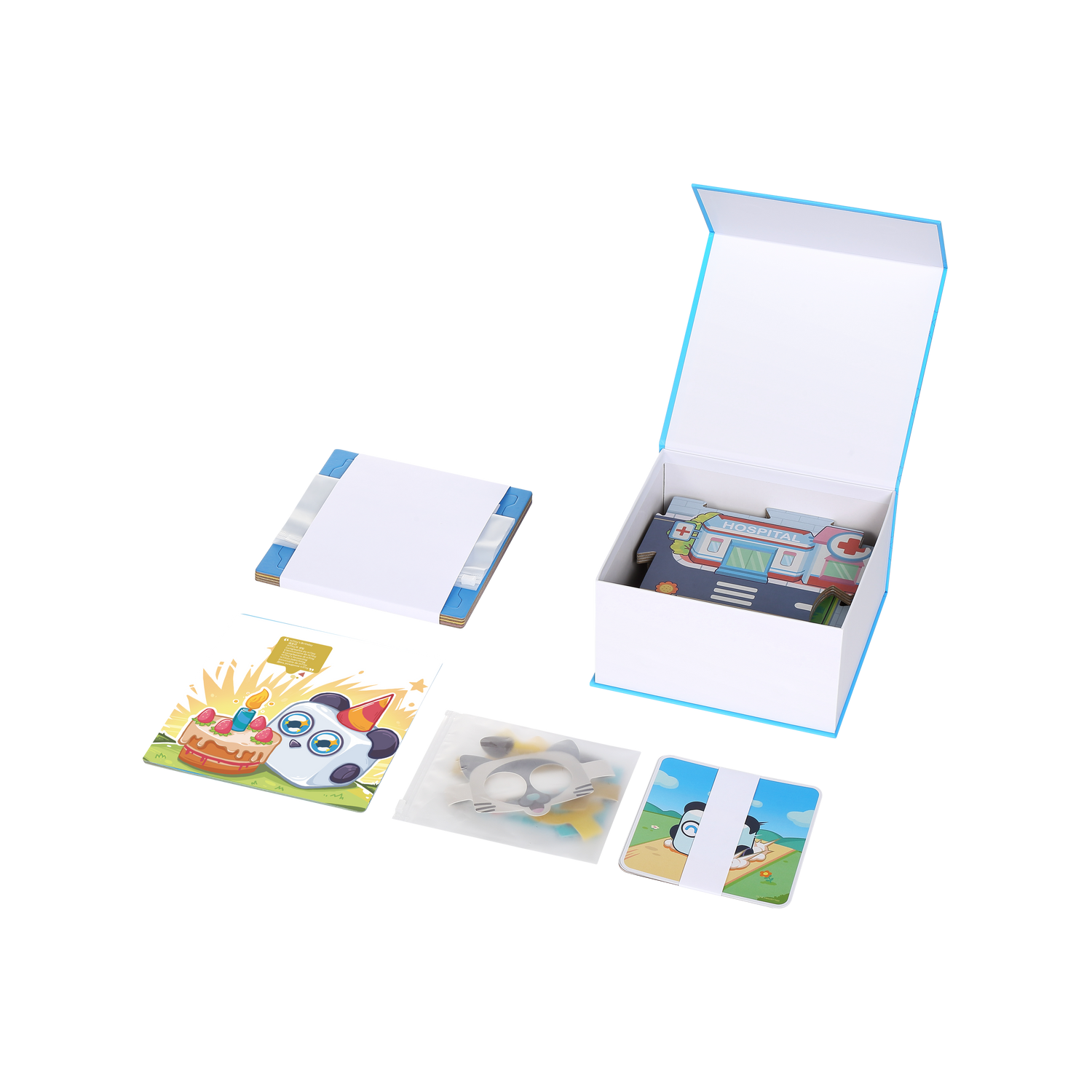 4 spēļu kartes (golfs, sacīkstes, mūzika, alfabēts)